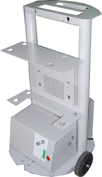 PC, Zubehör und Prüfkabeln (optional). Aufnahmewagen für Abgasmodul und Opazimeter.