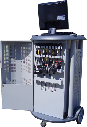 Unterbringung von PC, Zubehör und ihrer Prüfkabel.