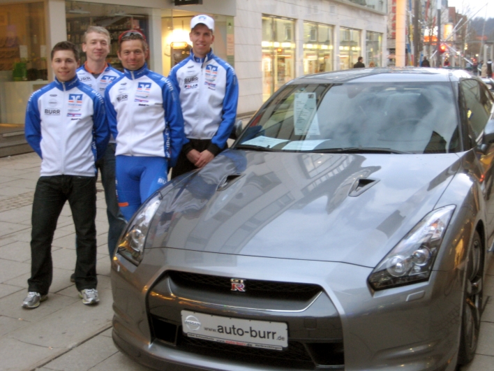 …trafen sich am vergangenem Wochenende im Rahmen der Heidenheimer Outdoortage in der Fussgängerzone. Das Rad-Team VOBA RSV 06 Nattheim hält seit 2008 (24h Rennen!!!!) den Rundenrekord auf der Nordschleife mit 38:03 Minuten. Nach 7:26,7 Minuten klickten die Stoppuhren bei der Rekordfahrt des 486 PS starken NISSAN GT-R auf der Nordschleife. Das NISSAN TEAM BURR dankt den Fahrern für den tollen Auftritt am Wochenende und drückt die Daumen für die Saison 2010!!!!!