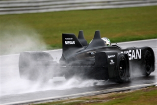 Der Nissan DeltaWing erforscht nach der Faustformel „halbes Gewicht, halbe Leistung, halber aerodynamischer Widerstand" neues Terrain. Unter seiner pfeilförmigen Nase stecken zwei Reifen mit nur jeweils vier Zoll breiter Gummiauflage, jedes davon würde dreimal in das Rad eines LMP1-Prototypen passen! Ein rund 300 PS starker Nissan DIG-T-Vierzylinder mit 1,6 Liter Hubraum auf Basis des Aggregats im Nissan JUKE sorgt für Vortrieb.