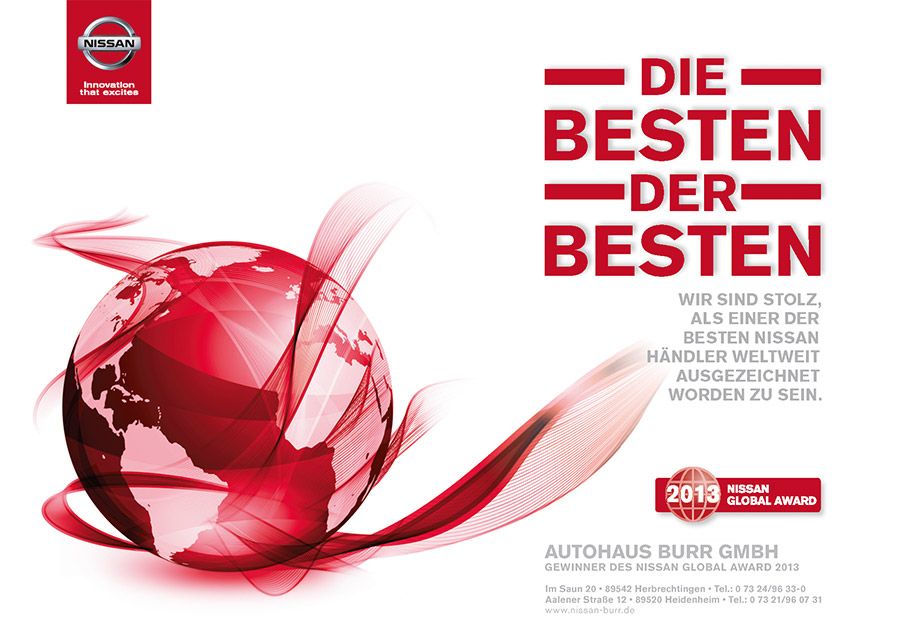 Am Ende eines strengen, weltweit durchgeführten Nominierungs- und Bewertungsprozesses wird der NISSAN GLOBAL AWARD an eine Spitzengruppe von Händlern verliehen, die sich als die „Besten der Besten“ in puncto Verkauf und Kundenzufriedenheit erwiesen haben.